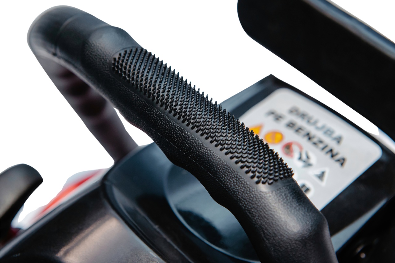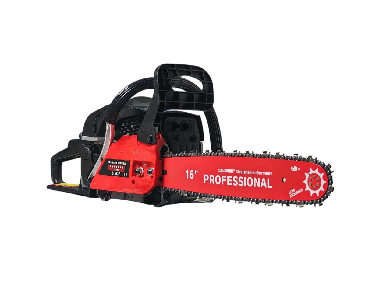Drujba benzina 8.5CP, 58cc, 10000rpm, lama 400mm, EasyStart, CAMPION PROFESIONALL GERMANY CMP1312R – Garantie 2 ani Drujba pe benzina CAMPION PROFESIONALL GERMANY CMP1312R este alegerea ideala pentru utilizatorii care cauta putere ridicata , fiabilitate si randament constant in orice aplicatie de taiere. Echipata cu un motor 2 timpi de 58cc si o putere impresionanta de 8.5CP , aceasta drujba profesionala pe benzina este potrivita atat pentru lucrari gospodaresti, cat si pentru activitati forestiere semi-profesionale . Motorul performant asigura o turatie maxima a lantului de 10000 rpm , oferind taieturi rapide si precise chiar si in lemn de esenta tare . Lama de 400 mm impreuna cu lantul cu 32 dinti permit debitarea eficienta a bustenilor si arborilor de dimensiuni medii, fiind ideala pentru taierea lemnului de foc . Sistemul EasyStart New Generation cu primer reduce efortul la pornire si asigura o demarare rapida. Carburatorul WALBRO optimizeaza consumul de combustibil si mentine functionarea stabila a acestei drujbe benzina 58cc in conditii variate de lucru. In plus, aprinderea electronica si sistemul automat de ungere a lantului contribuie la cresterea duratei de viata si la reducerea costurilor de intretinere. Designul ergonomic si greutatea de aproximativ 5 kg asigura control sporit si confort in utilizare indelungata. Rezervoarele generoase – 550 ml pentru carburant si 260 ml pentru ulei lant – permit sesiuni de lucru eficiente, fara intreruperi frecvente. Caracteristici tehnice principale: Cod produs: CMP1312R Brand: CAMPION PROFESIONALL GERMANY Motor: 2 timpi, 58cc Putere: 8.5CP Turatie maxima lant: 10000 rpm Lungime lama: 400 mm Lant: 32 dinti Carburator: WALBRO Sistem pornire: EasyStart New Generation cu primer Aprindere: electronica Sistem ungere lant: automat Capacitate rezervor carburant: 550 ml Capacitate rezervor ulei: 260 ml Greutate: aprox. 5 kg Garantie: 24 luni Continut pachet: 1 x Drujba benzina CAMPION PROFESIONALL GERMANY CMP1312R 1 x Lama 400 mm 1 x Lant 32 dinti 1 x Protectie lama 1 x Trusa scule pentru montaj si intretinere 1 x Palnie pentru alimentare 1 x Manual de instructiuni Utilizari: Taierea lemnului de foc pentru uz casnic Debitarea bustenilor si arborilor de dimensiuni medii Lucrari forestiere de intensitate medie Curatarea livezilor si toaletarea arborilor Indepartarea arborilor cazuti dupa furtuni Lucrari in constructii din lemn si amenajari exterioare Prin combinatia dintre motor puternic 8.5CP , lama 400 mm , turatie 10000 rpm si sistemul EasyStart , modelul CAMPION PROFESIONALL GERMANY CMP1312R reprezinta o investitie eficienta pentru utilizatorii care cauta o drujba pe benzina fiabila, puternica si durabila , optimizata pentru performanta si productivitate maxima.