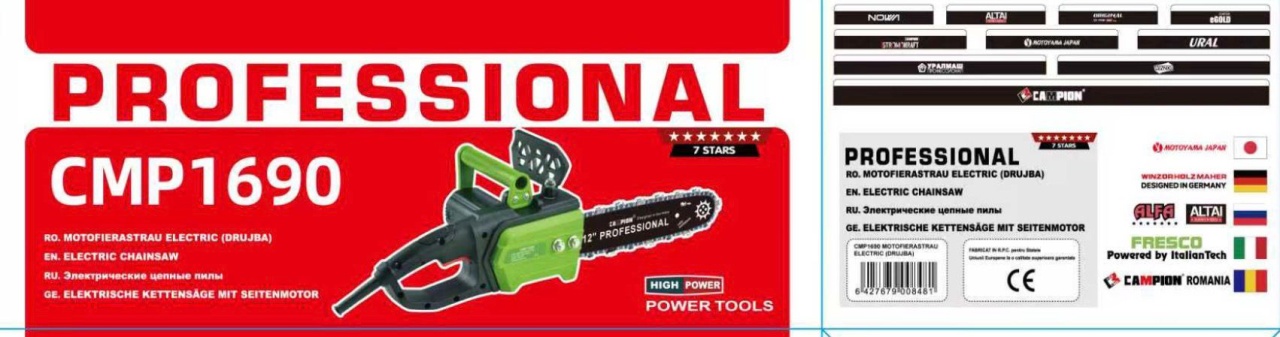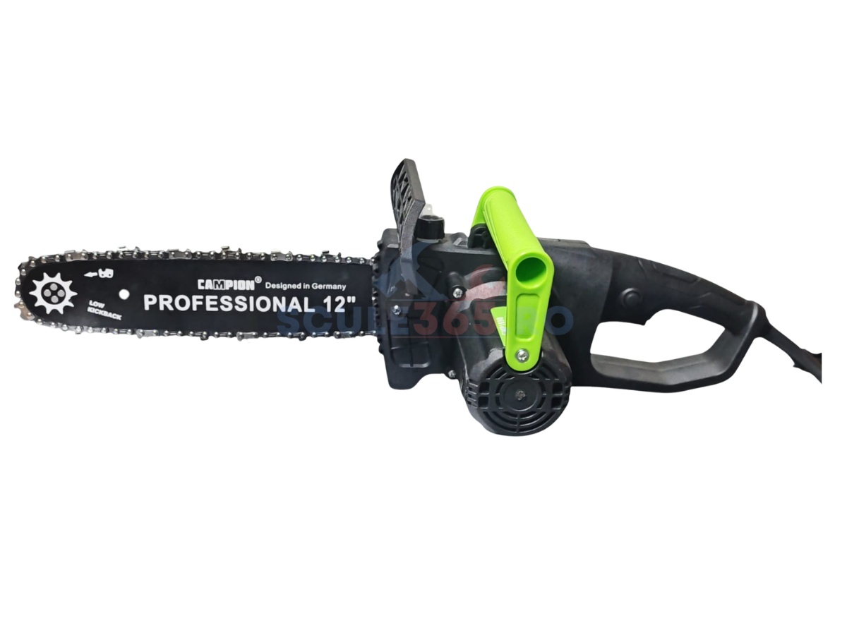 Drujba electrica 3000W, 4500rpm, lama 300mm, 15m/s, ungere automata, pornire lenta, CAMPION PROFESSIONAL CMP1690 Drujba electrica CAMPION PROFESSIONAL CMP1690 este alegerea ideala pentru utilizatorii care cauta putere ridicata, control precis si siguranta sporita in lucrarile de taiere. Echipata cu un motor electric de 3000W , aceasta drujba ofera performanta constanta si eficienta superioara in activitati gospodaresti si semi-profesionale. Cu o turatie de 4500 rpm si o viteza a lantului de 15 m/s , modelul CMP1690 asigura taieturi rapide si curate in lemn de diferite esente. Lama de 300 mm (30 cm) este ideala pentru debitarea lemnului de foc, taierea bustenilor de dimensiuni medii si lucrari de intretinere in curte sau gradina. Sistemul de ungere automata a lantului contribuie la reducerea uzurii si la mentinerea performantelor optime in timpul utilizarii. Functia de pornire lenta protejeaza motorul si reteaua electrica, reducand socul la pornire si prelungind durata de viata a echipamentului. In plus, protectia pentru mana si manerul ergonomic ofera un nivel ridicat de siguranta si confort, chiar si in utilizari prelungite. Echipata cu lama Campion by Germany , aceasta drujba electrica 3000W imbina puterea cu precizia, fiind o solutie eficienta pentru lucrari regulate de taiere. Caracteristici tehnice: Model: CMP1690 Brand: CAMPION PROFESSIONAL Putere motor: 3000W Turatie: 4500 rpm Lungime lama: 300 mm (30 cm) Viteza lant: 15 m/s Sistem ungere lant: automata Pornire: lenta (soft start) Protectie mana: da Maner: ergonomic Tip alimentare: electrica Utilizari: Taierea lemnului de foc pentru uz casnic Debitarea bustenilor de dimensiuni medii Lucrari de intretinere in curte si gradina Constructii usoare din lemn Proiecte DIY si aplicatii semi-profesionale Prin combinatia dintre motor puternic de 3000W , lama 300 mm , viteza lant 15 m/s si ungere automata , modelul CAMPION PROFESSIONAL CMP1690 reprezinta o alegere eficienta pentru cei care cauta o drujba electrica fiabila, sigura si usor de utilizat , optimizata pentru performanta si durabilitate.
